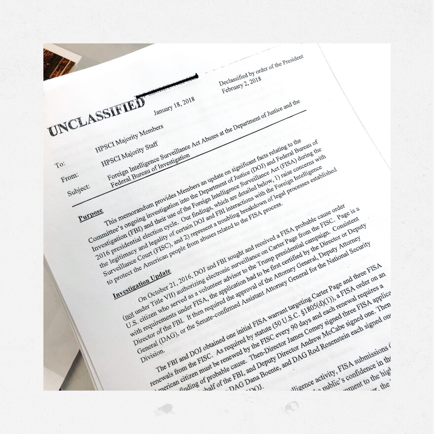 A memo alleging that the FBI abused its surveillance authority became public on Friday after a push by House Republicans. President Trump authorized the memo's release, even after the FBI expressed "grave concerns" about its "accuracy." NPR journalists who cover the Justice Department, the White House and national security have annotated the White House's authorization letter and the memo itself, which was authored by House Intelligence Committee Chairman Devin Nunes, R-Calif.